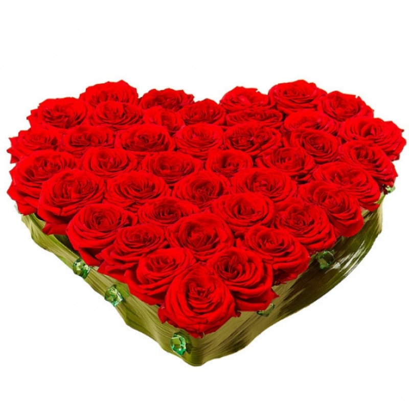 Сердце из 45 красных роз